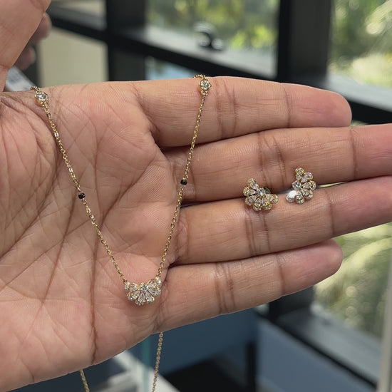 Half Flora Moon Mangalsutra Necklace Set – Gold, Lab-Grown Diamond, Classic & Station Chain Options, Pendant with Earrings