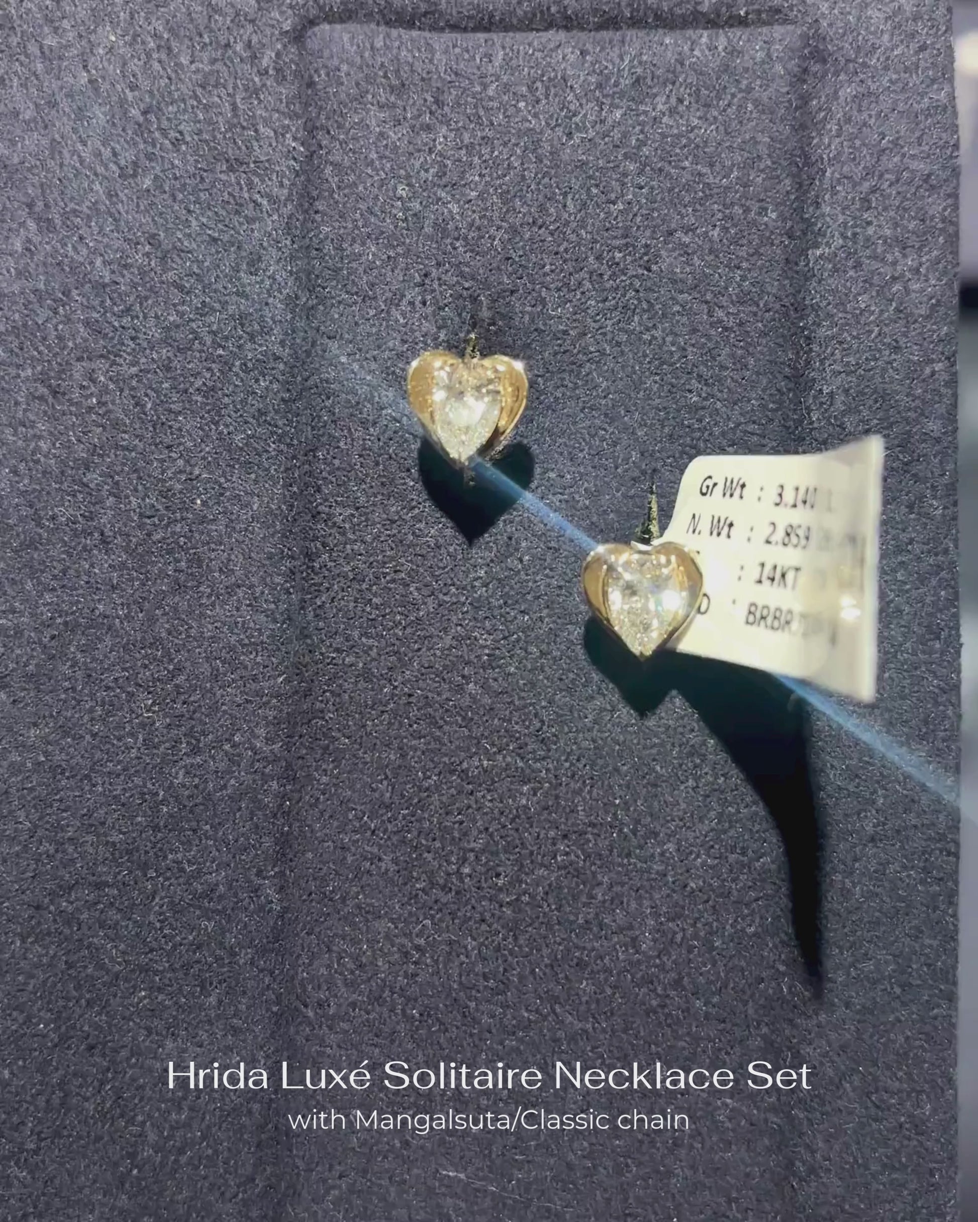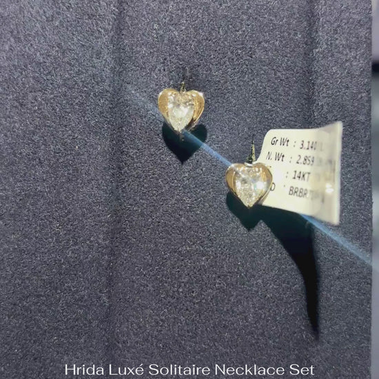 Hrida Luxé Solitaire Necklace Set – 14K 18K Gold, Pendant & Earrings, Modern Indian Jewelry
