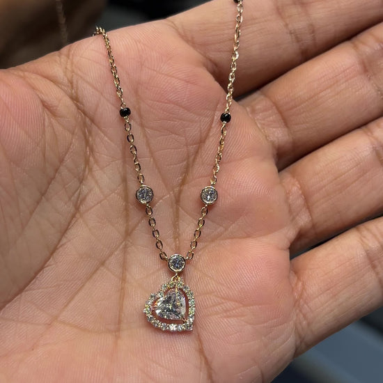 Discover the Love-Vow Mangalsutra, a contemporary take on a sacred tradition. Designed for the modern bride, this necklace centers around the universal symbol of love—the heart—while honoring cultural heritage with its delicate black bead detailing.